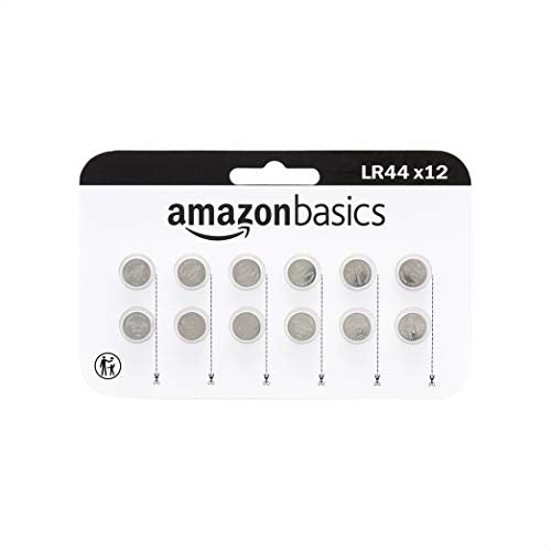 Amazon Basics 12 Pack LR44 1.5 Volt Alkaline Button Cell Battery, Long Lasting Power in Child Resistant Packaging