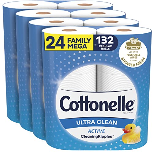 Cottonelle Ultra Clean Toilet Paper with Active CleaningRipples Texture, Strong Bath Tissue, 24 Family Mega Rolls (24 Family Mega Rolls = 132 Regular Rolls) (4 Packs of 6 Rolls) 388 Sheets per Roll
