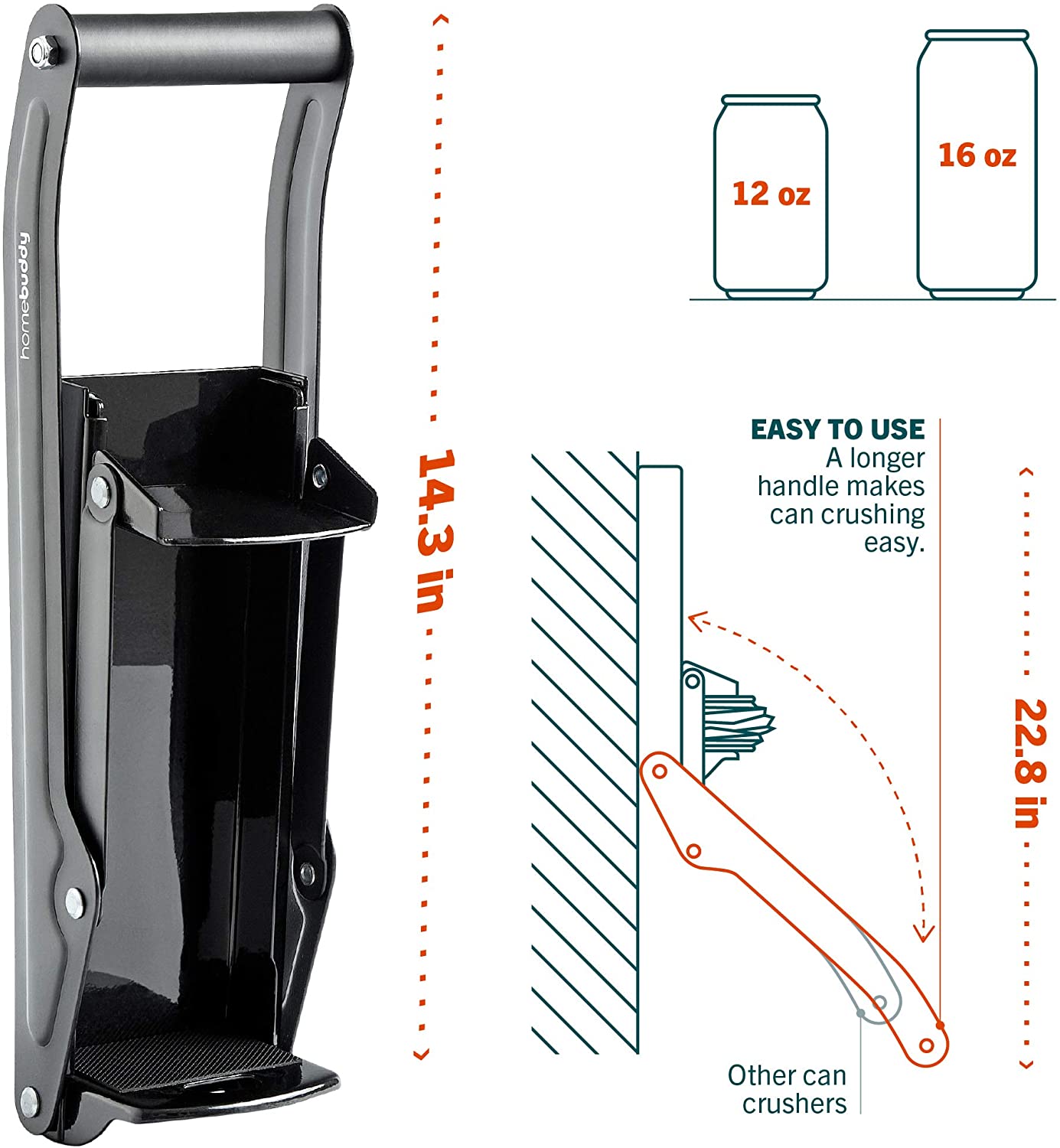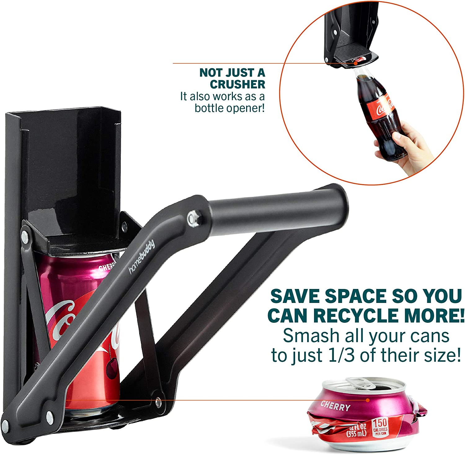 - 👊 STURDY & DURABLE - Not a flimsy aluminium can smasher, this crusher is made of thick sheet steel, with sturdy reinforced rivets & bolts holding the handle in place. The HomeBuddy can smasher for recycling is made to last!
