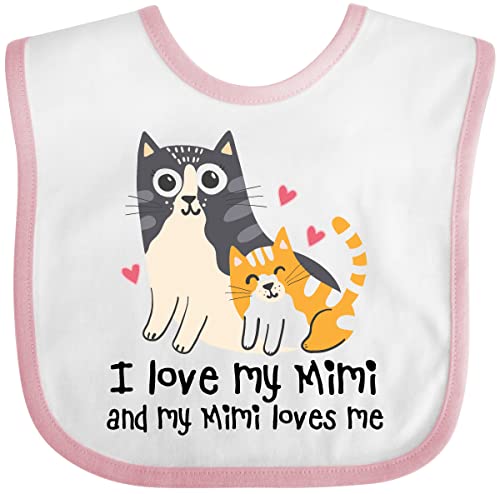 Inktastic I Love My Mimi Loves Me Cat Baby Bib White and Pink 3ccff