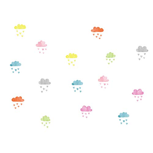 Kids and Nursery Room Colorful Cloud Raindrops Peel & Stick Watercolor Painting Wall Art Mural