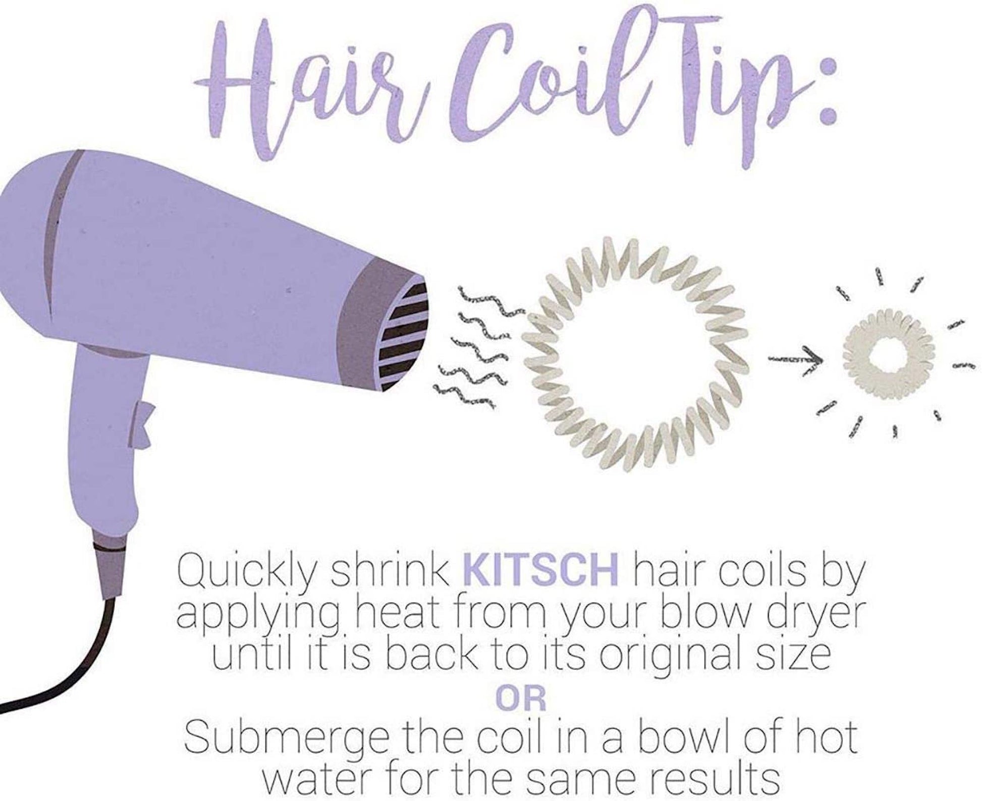 - SMALL BUT MIGHTY: Kitsch hair coils are 1.5 inches in diameter, but don’t be deceived by their size! Kitsch coils stretch easily and generously to hold up all of your hair in a ponytail, messy bun, or braid, and comfortably stretch to be worn on your wrist when not in use. If your coil happens to stretch larger than its original size, simply place it in a cup of warm water or use a hot blow dryer to shrink it to its original size.