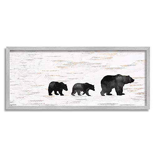 Stupell Industries Bear Family Silhouette On Wood Texture Animal, Design by A.V Gray Framed Wall Art, 10 x 24, Black