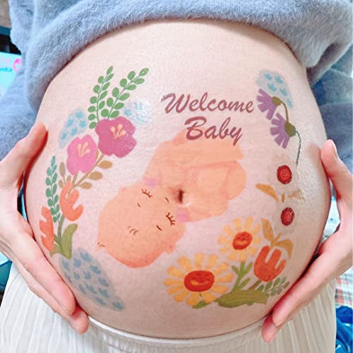 tuzuru Pregnancy Belly Stickers Tattoo Stickers Body Paint Sticker Cute Pregnancy Baby Bump Belly Stickers for Baby Shower Maternity Gifts (D)